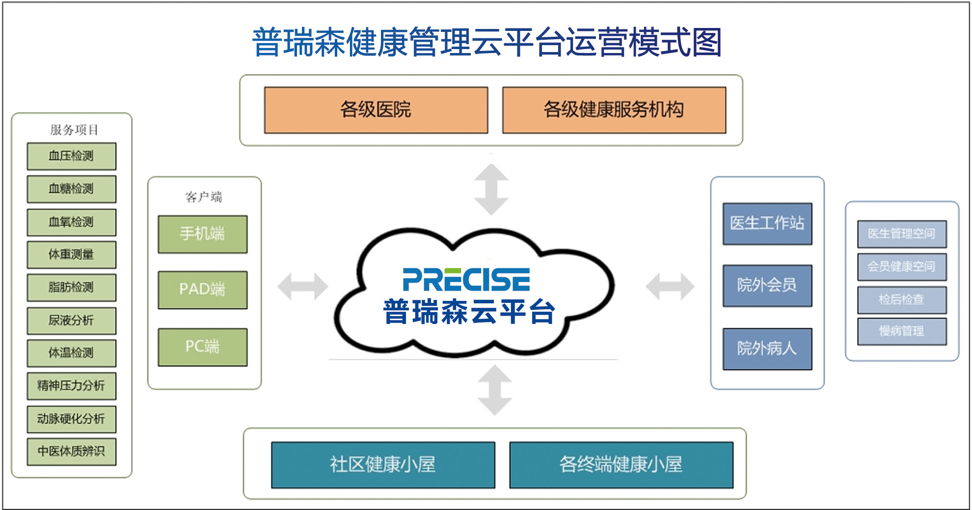 整体运行模式为: 社区健康小屋=“健康小屋 (系列) +健康云平台+社区医生服务”