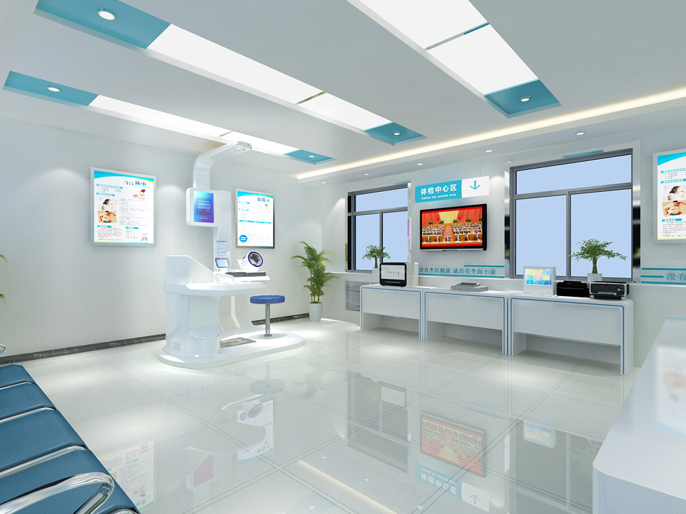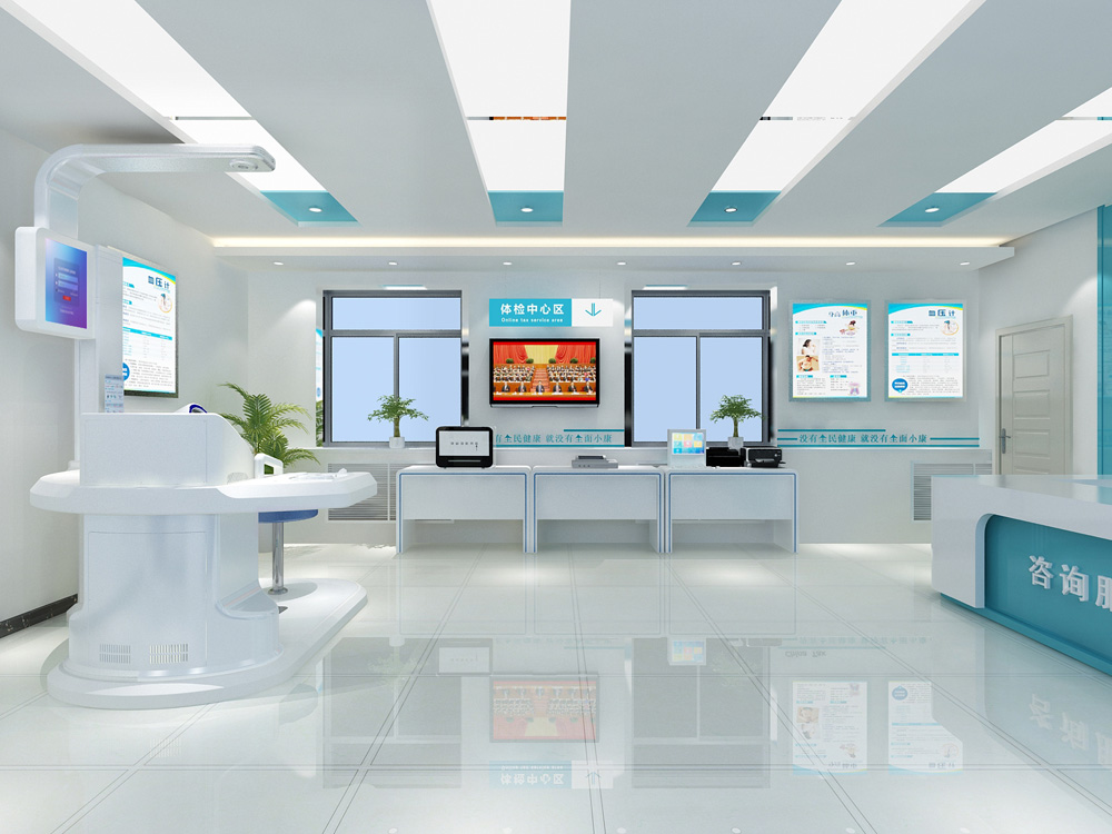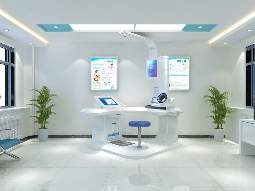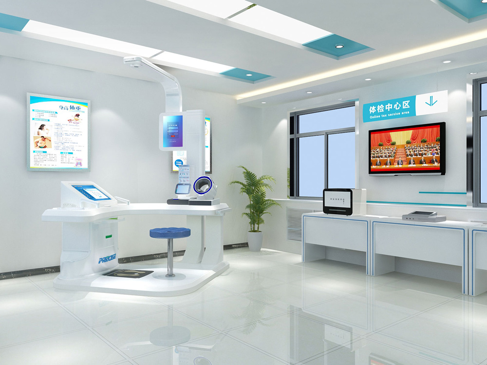 1、整体转角式、流畅式设计,医疗科技感十足,便于体检者一次性自助式完成各项体检项目。